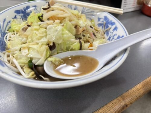 スープは醤油味。野菜のエキスが染み込んで、香ばしさが際立つお味。
