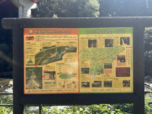 こちらは「九州電力(株)竜宮滝発電所」となっており、高さ20mから落とす水の力を利用して最大200kwの電気を起こし、年間に発生する電力量は一般家庭の約500世帯分に相当します、との事。(案内板より)