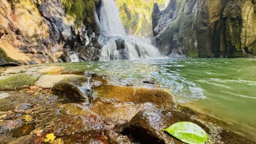 【上益城郡】どんなにずぶ濡れになっても「推し」に近づきたい!迫力満点の「竜宮滝」に心奪われる。