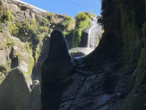 こちらの「竜宮滝」は道の下にありますので、このような眺めも絵になります。