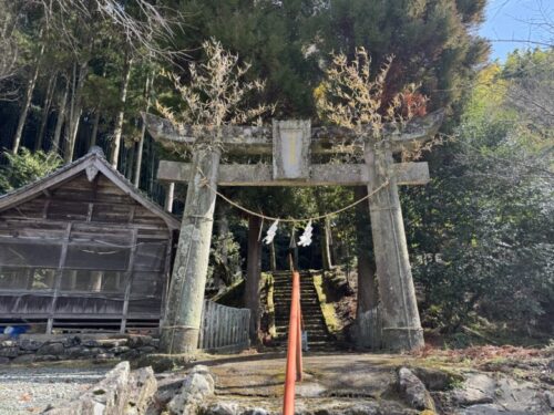 ここまで来ると、明らかに他の場所と空気が変わる感じがしました。まるで透明な糸がピーンと貼っているような空気感です。駐車場はありませんが、この鳥居前の道に、よほど大きい車でない限り一台置けます。