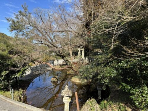 鳥居の横に池があるのは珍しいなぁと思いながら歩きます。あまりにも静かで、池に落ちる水のちょろちょろという音が響いております。