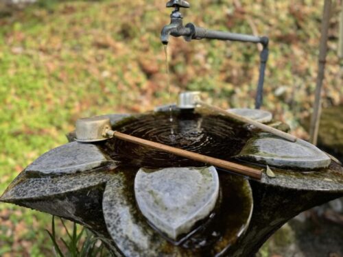 まるで蓮の花のような手水舎。ここに水滴が落ちるのをいつまでも眺めていたくなるような、不思議な魅力がありました。