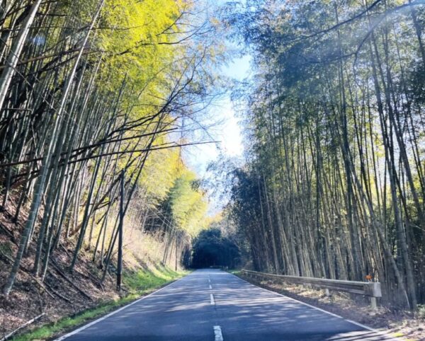 龍神様の姿をした古木が祀られている珍しい神社があると聞いて、湯前町にやってきました。自然の中を進んで神社へいきます。