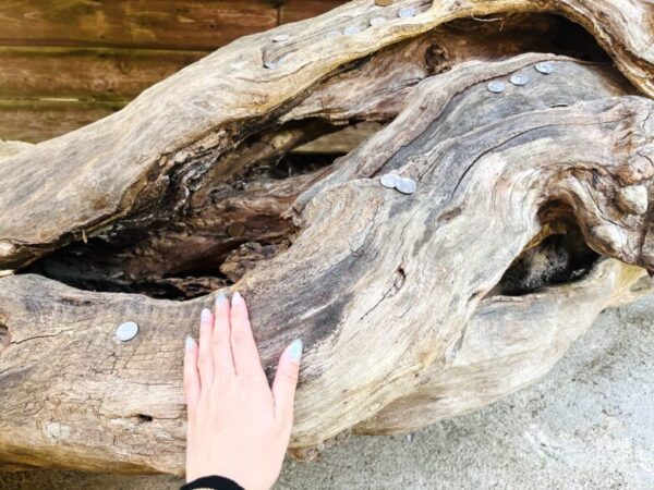 これは桑野古木で、神社を作っている際に土の中から出た自然の古木なんです。