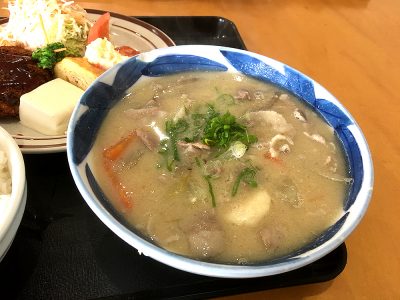 この食堂の売りはこのボリューム! 豚汁が大きな丼で運ばれてきました!