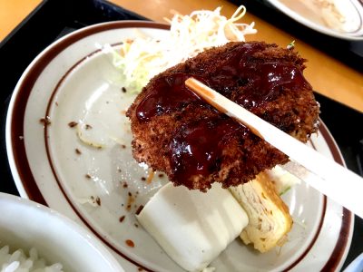 メンチカツ定食を頼んだかと思ってしまうほどのカツのボリュームも良いですね。