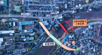 橋もかなり老朽化し、白川拡張に伴って橋の付け替え工事が行われることに。龍神橋の隣に新しい橋を掛ける工事が始まりました。