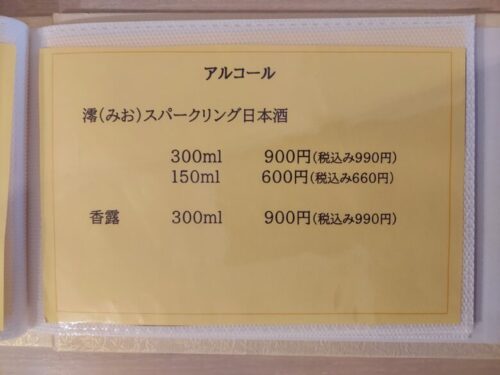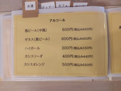 ソフトドリンクだけでなく、アルコールも提供されています。お酒が好きな人も楽しめますね。