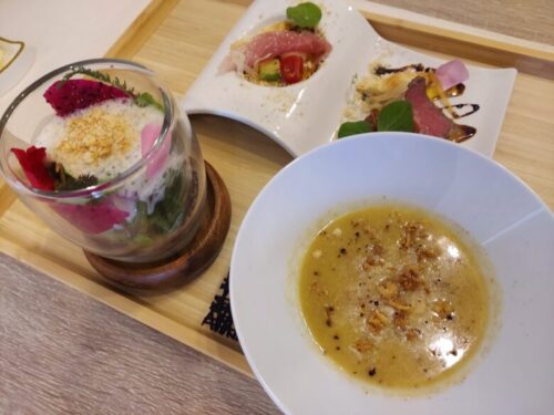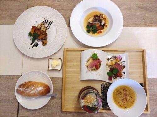 前菜2品、サラダ、スープにパン、そしてメイン料理。