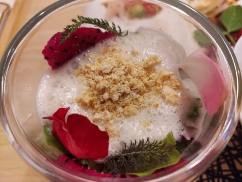 花瓶なのか?と思うほどおしゃれな器に盛り付けられたサラダには、泡らしきものが。