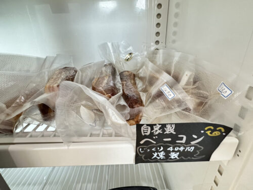 自家製ベーコンなども販売。すべて無添加だそうですよ。