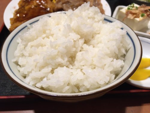 ご飯は、普通盛りでなんと320g!女性や、たくさん食べられない人は少なめにしてもらうことも可能ですが、私は迷わず普通盛りをいただきました。