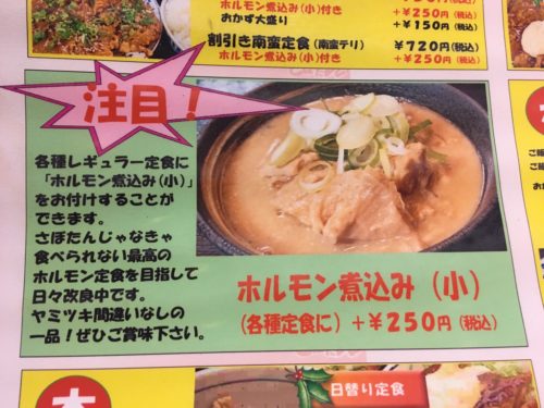 そして忘れてはならない、さぼたんのランチでイチオシなのが、こちらのホルモン煮込みです。