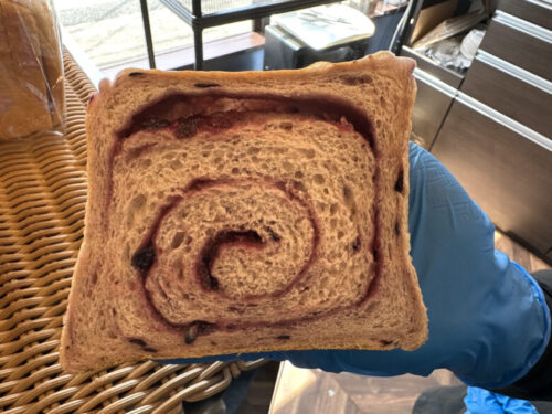 今の時期はカシスとブルーベリーの食パンが人気だそうです。