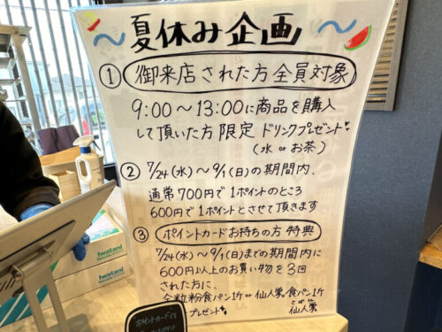 13時までに来店された方にはお水又はお茶をプレゼントなど夏休み企画もされていました。
