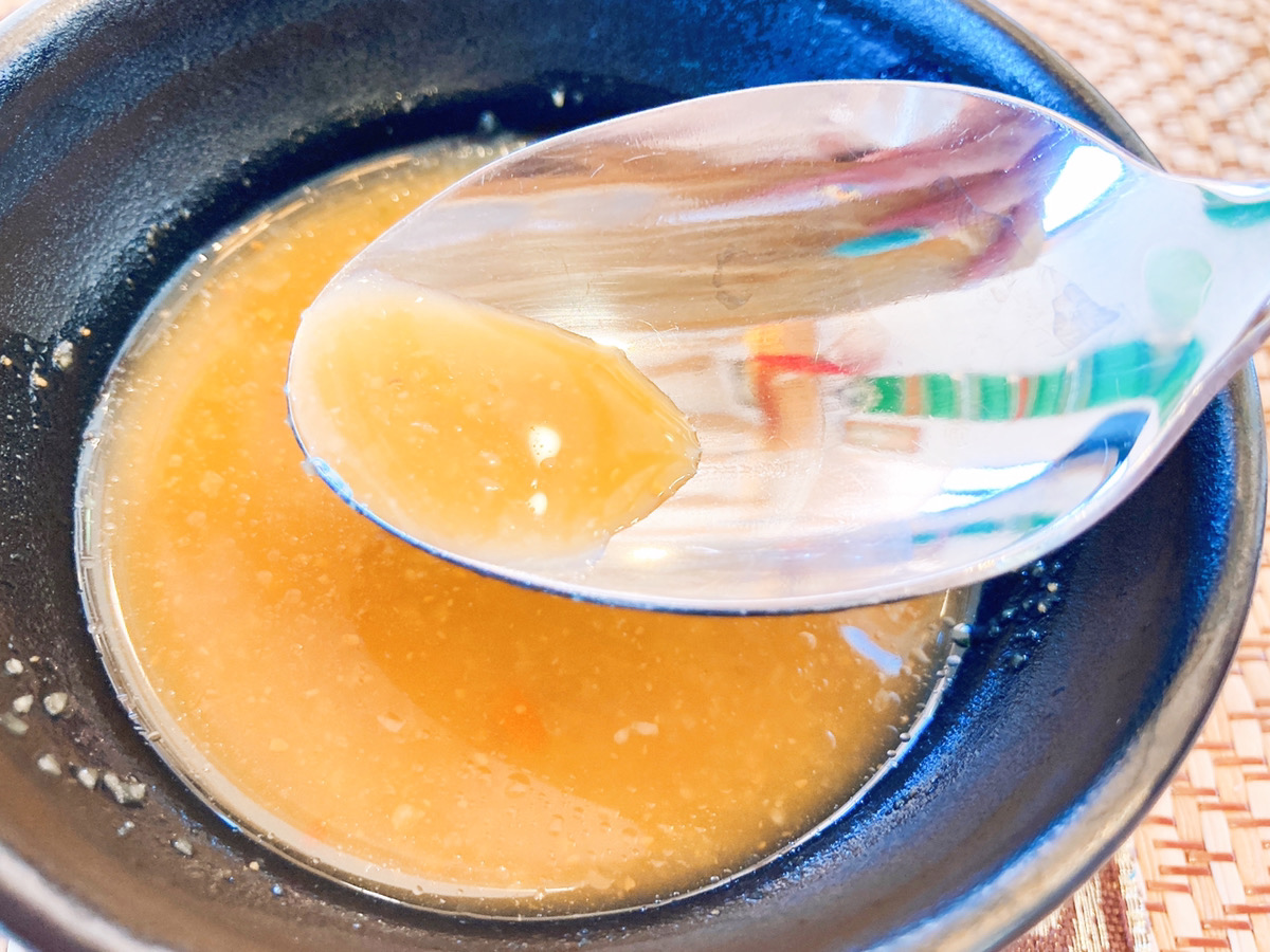 セットについてくるスープもあっさり。出汁が効いていて美味しい。
