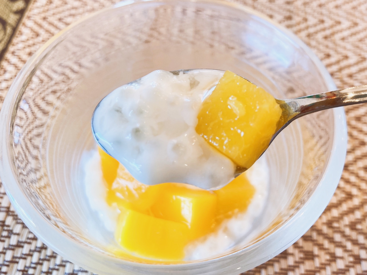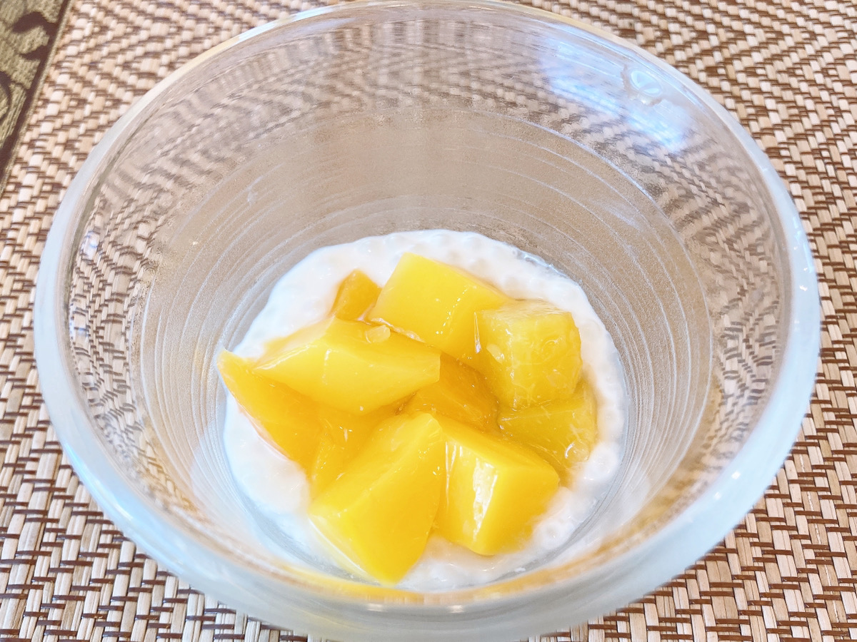 今日出てきたのはタピオカココナッツミルクにフルーツ。甘ーいココナッツミルクに、芯があってもちもちのタピオカ。もう絶品。フルーツと合わせても絶品。