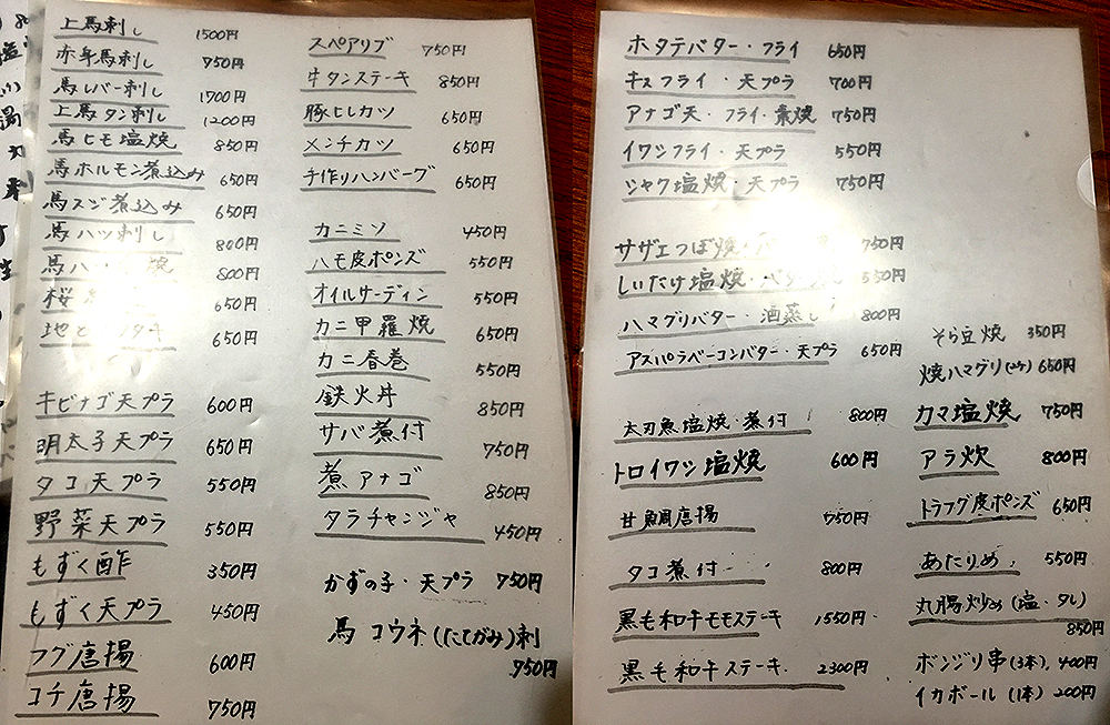 この手書きのメニューも愛着が湧きますね。どれにするか悩ましい、豊富なメニューの数々!