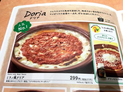 やはり何といっても、サイゼリヤを一躍大人気店に押し上げたメニュー、激安の「ミラノ風ドリア」!なんと税込で300円以下!