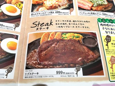 メニューを確認する限り、お酒を除いて単品で一番高いメニューでも「リブステーキ」の999円と、料理単品ではどれも1000円を超えないという素晴らしさ!