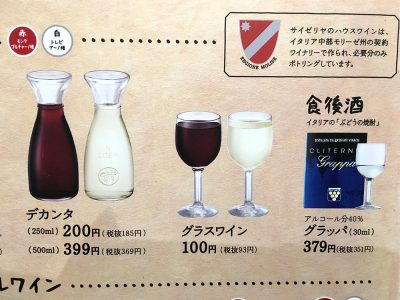 サイゼリヤを有名にしたもうひとつの人気メニュー「グラスワイン」税込100円!それでも物はイタリア産ワインです!