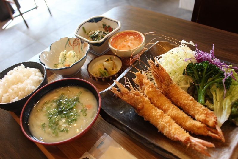 ということで、いただいたのが「エビフライ定食(税込1200円)」。大きなエビが3尾も!