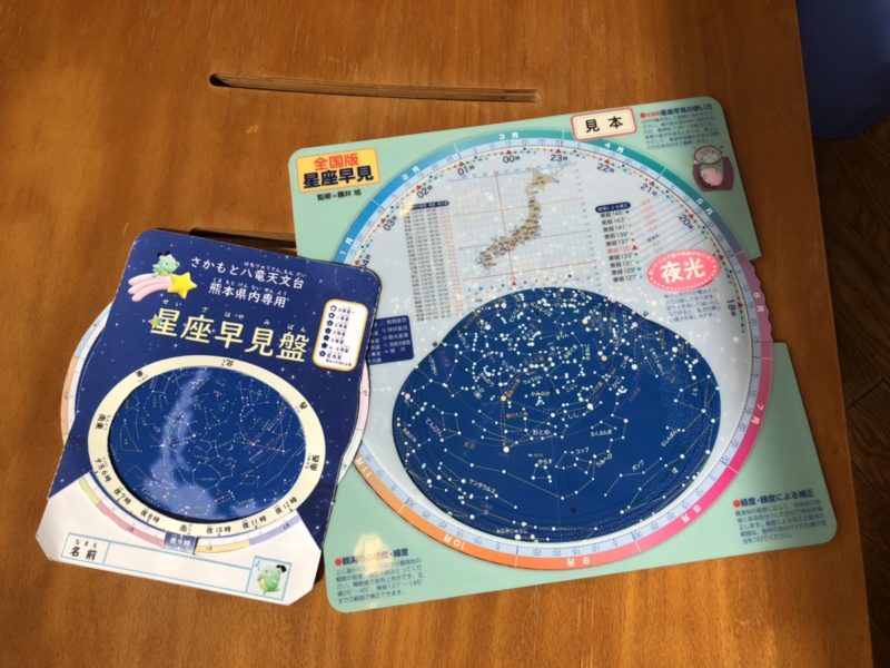 通常の星座早見表は、全国用なの お子さんが見やすいように熊本県内専用を作成したとのこと。