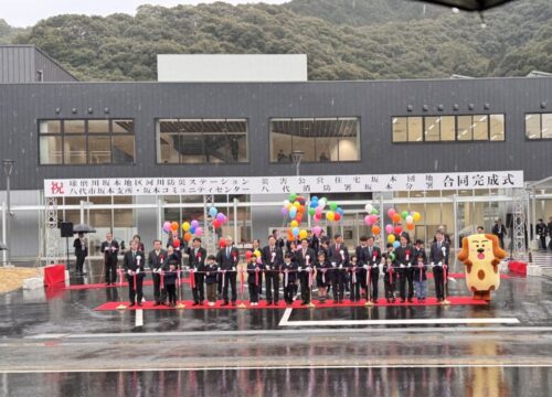 同時に八代市が「坂本支所・坂本コミュニティセンター」、国交省が「球磨川 坂本地区河川防災ステーション」が完成しました。