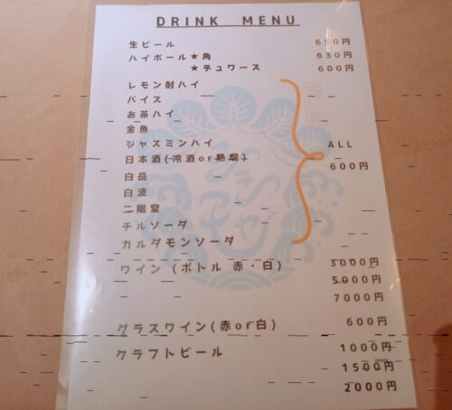 お酒のメニューはこちら。