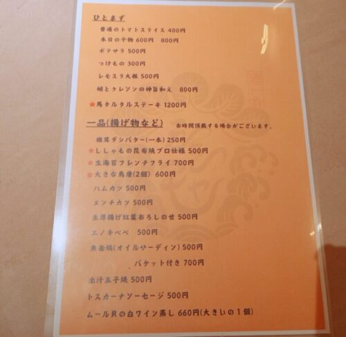 肴のメニューはこちら。
