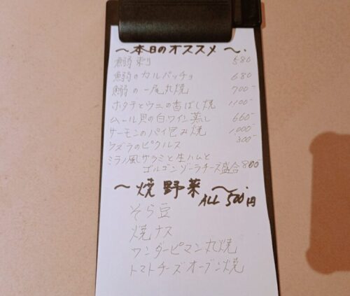 本日のオススメは日替わりで、こちらも一期一会です。