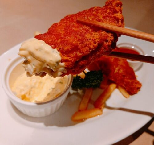 衣がざっくざくでタルタルソースを乗せると酒が止まらない…!