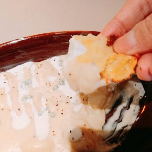 シュー生地のようなサクフワ生地(中身は空洞)を、ブルーチーズがたっぷりのソースに絡めて食べると…至福!