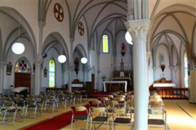 この写真を見るとわかる通り、教会の床が「畳」なんですね!