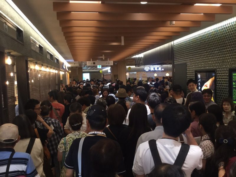 こちら、通路が人で混雑しているだけに見えますが、半分くらいは飲食店に並んでいる人でした。もう誰が並んでいて、誰が進みたいのかわからない。