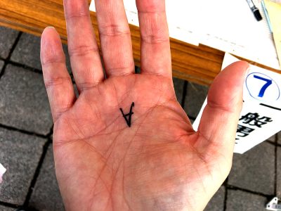 受付をするとAかBかの二者選択のくじを引き、Aだった私は手のひらにAと書かれてしまいました。