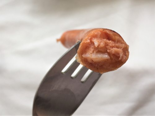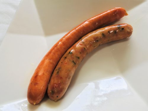 ピリっと辛くジューシーなソーセージに、ナンコツの食感がコリコリとアクセントになっています。