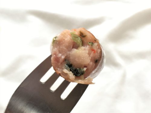 粗挽きでジューシーなお肉の中に高菜がたっぷり。高菜が絶妙にマッチしてあっさりしています。