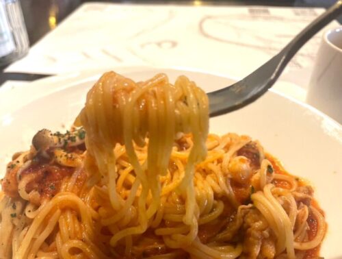 「生パスタが固まりやすいので、混ぜながらお召し上がりください」と声をかけていただき、よく混ぜながら一口食べてみると…