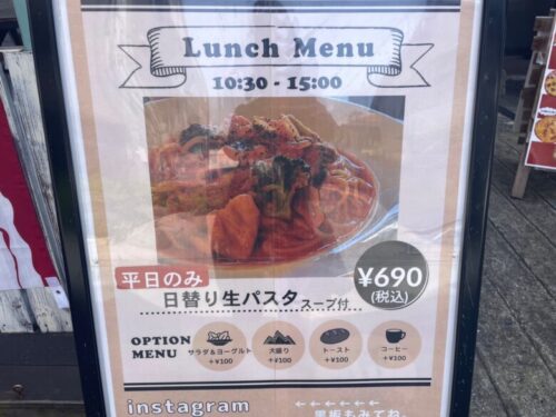 「どんなお店なんだろう…」と、看板を見ていたら、なんと平日限定で、日替わり生パスタがスープ付きで690円(税込)という驚きの価格!