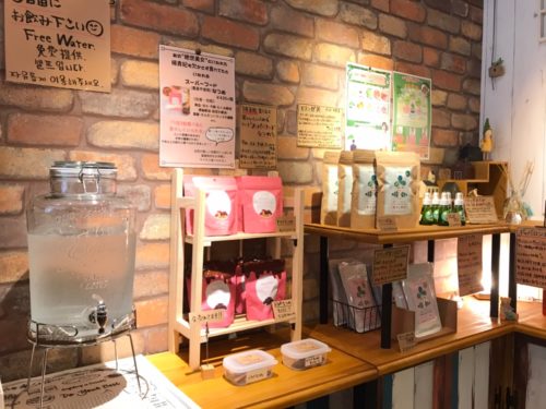 こちらのカフェには、お茶やおやつの販売コーナーもあり、東京・青山で売れているという、農薬不使用のドライなつめや、モリンガ茶などがあり、どれも体に嬉しい商品ばかり!