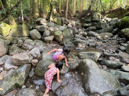 岩場を上って遊んだり、自然の中にいると、子どもたちもとってもご機嫌で、気持ちよさそう。