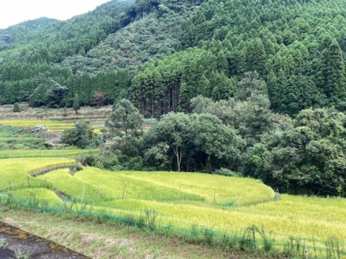 ちょうど稲が実り、黄金色に染まる棚田の風景に心が和みます。