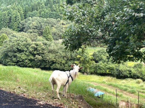 水源に行く途中で、かわいい白ヤギさんにもあいました。