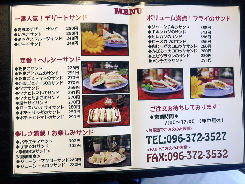 メニューには、最近人気のデザートサンドや、ダイエットをされている方にお勧めヘルシーサンド、男性人気の高いフライサンド、お楽しみサンドなど、バラエティ豊富!