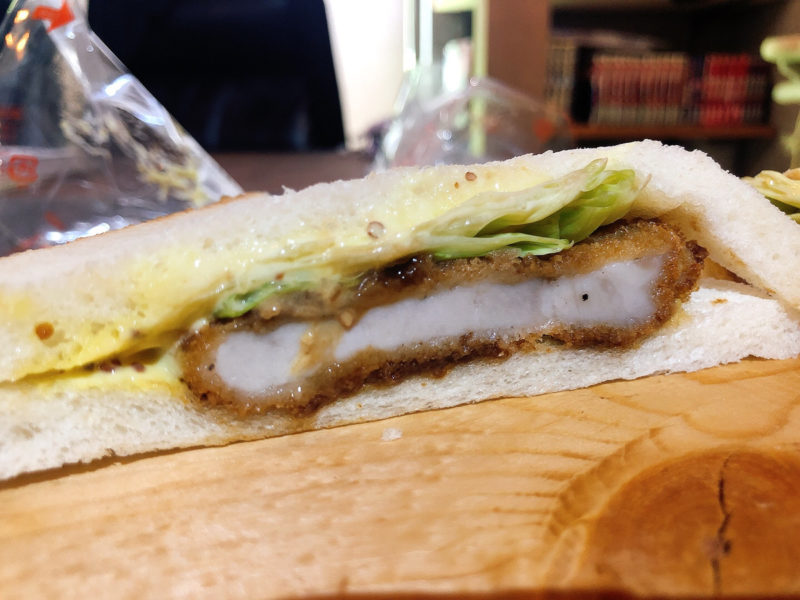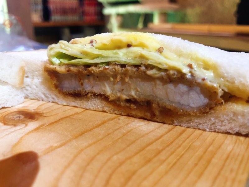 もちもちの食パンと、ジューシーなカツがたまりません。昨今分厚い断面を前面に出したカツサンドが主流ですが、やっぱり毎日でも食べたくなるのはこういうサンドイッチなんです。