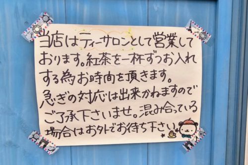 入口には「紅茶を一杯ずつお入れする為、お時間を頂きます」とあります。