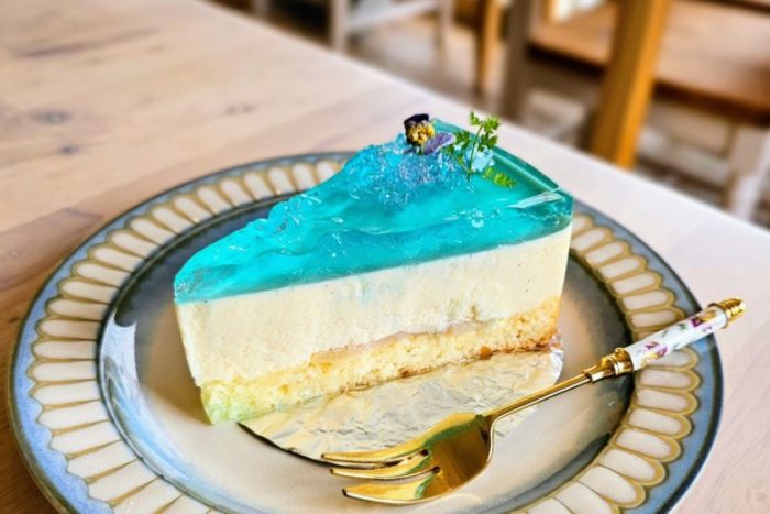 ババロアは水色が鮮明で、食べてみるとババロアの白い部分と青いゼリーの部分がさっぱりしていて、ぺろりと食べることができます。