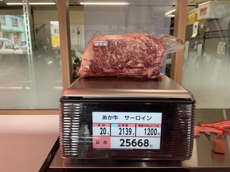 でも2kgのあか牛のサーロイン塊、いつか食べてみたいです。
